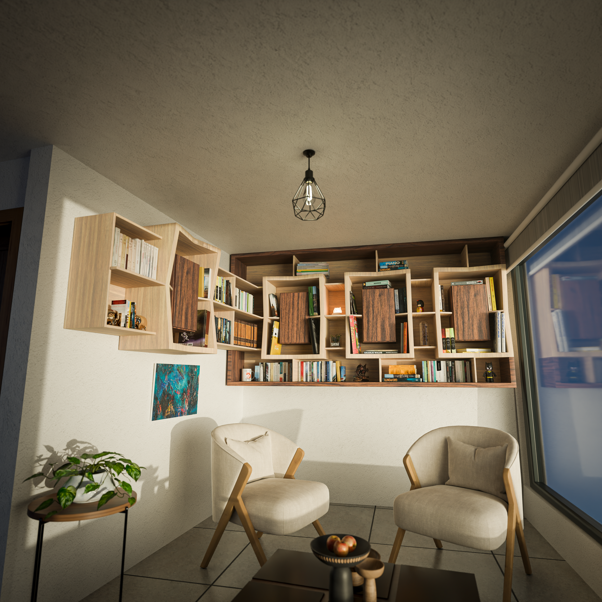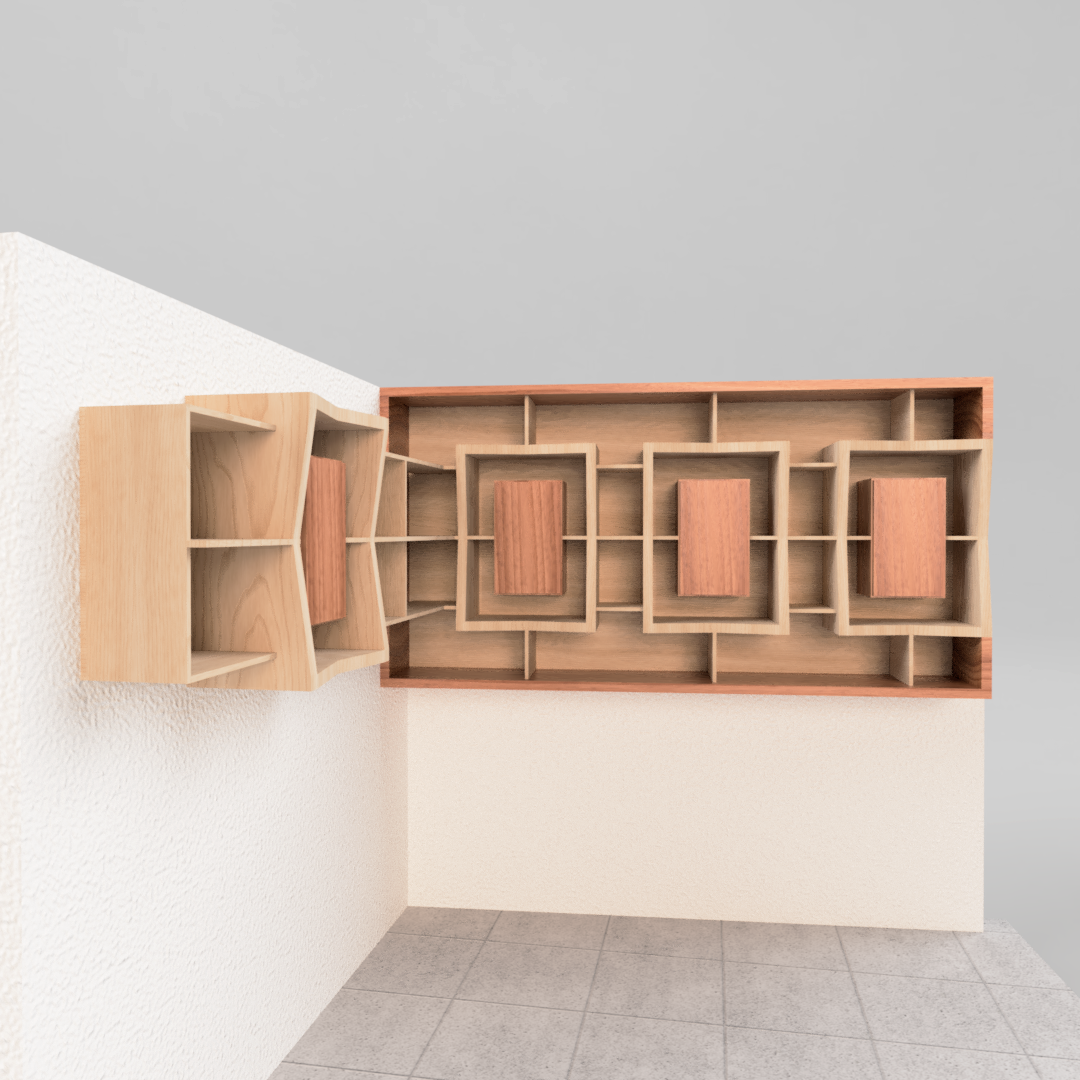 Este librero "marco de libros" combina funcionalidad y diseño al disponer los libros alrededor de cajones con cerradura, creando un marco único. Además de almacenar libros, ofrece un espacio central ideal para exhibir adornos o fotos familiares, integrando organización y decoración en una sola pieza. Perfecto para quienes buscan seguridad y estilo en su biblioteca personal.